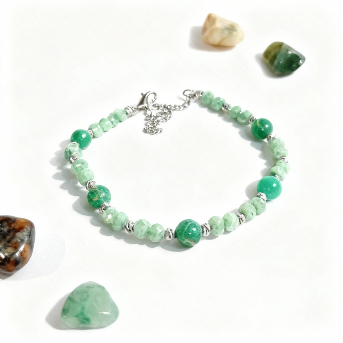 Canlı yeşil tonları ve zarif dizilimiyle bu el yapımı halhal, doğanın pozitif enerjisini ayağınıza taşıyor. Her biri tek üretim olup sizi yansıtan eşsiz bir aksesuardır.