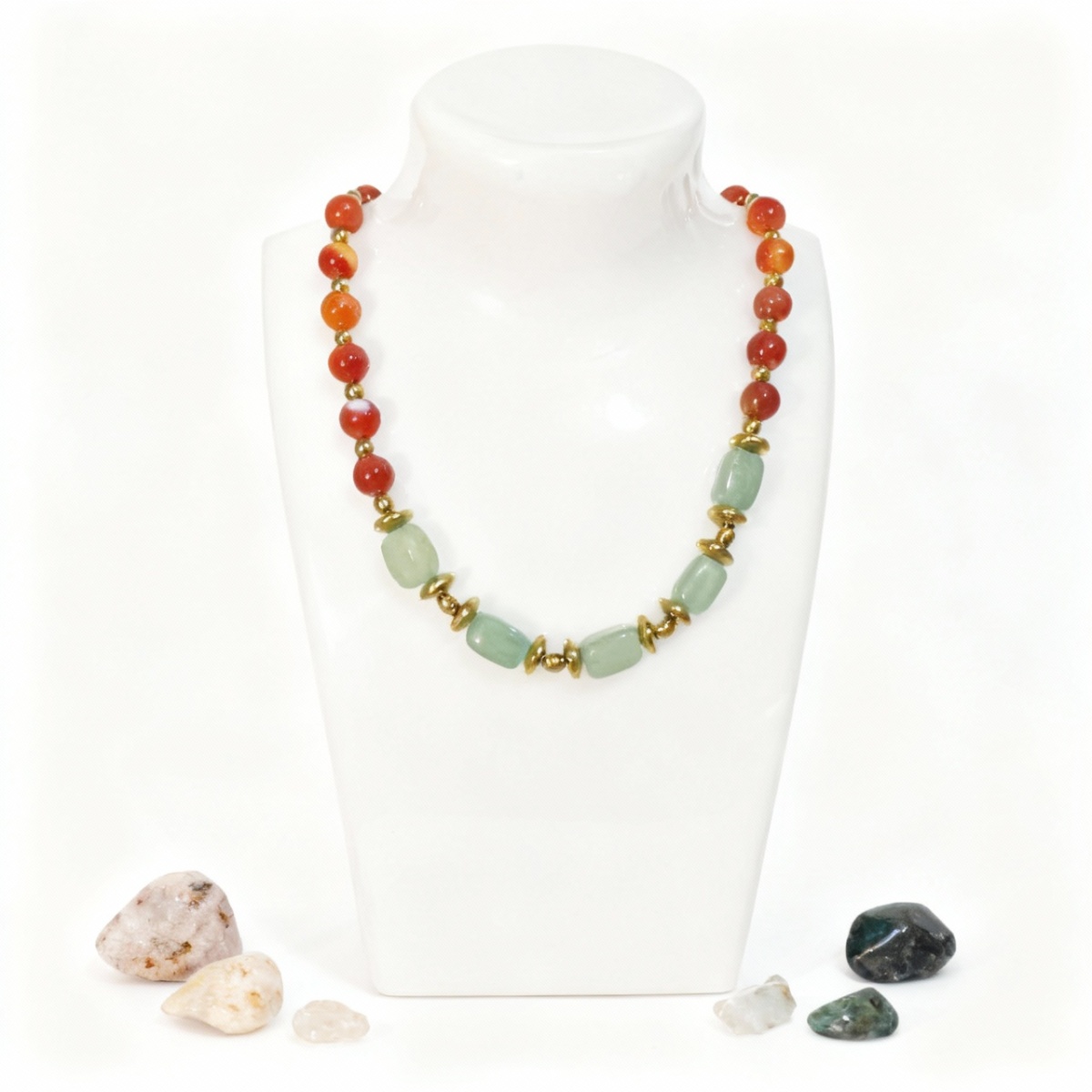 Akik, Aventurin ve Hematit Taşlarıyla Hazırlanmış El Yapımı Doğal Kolye