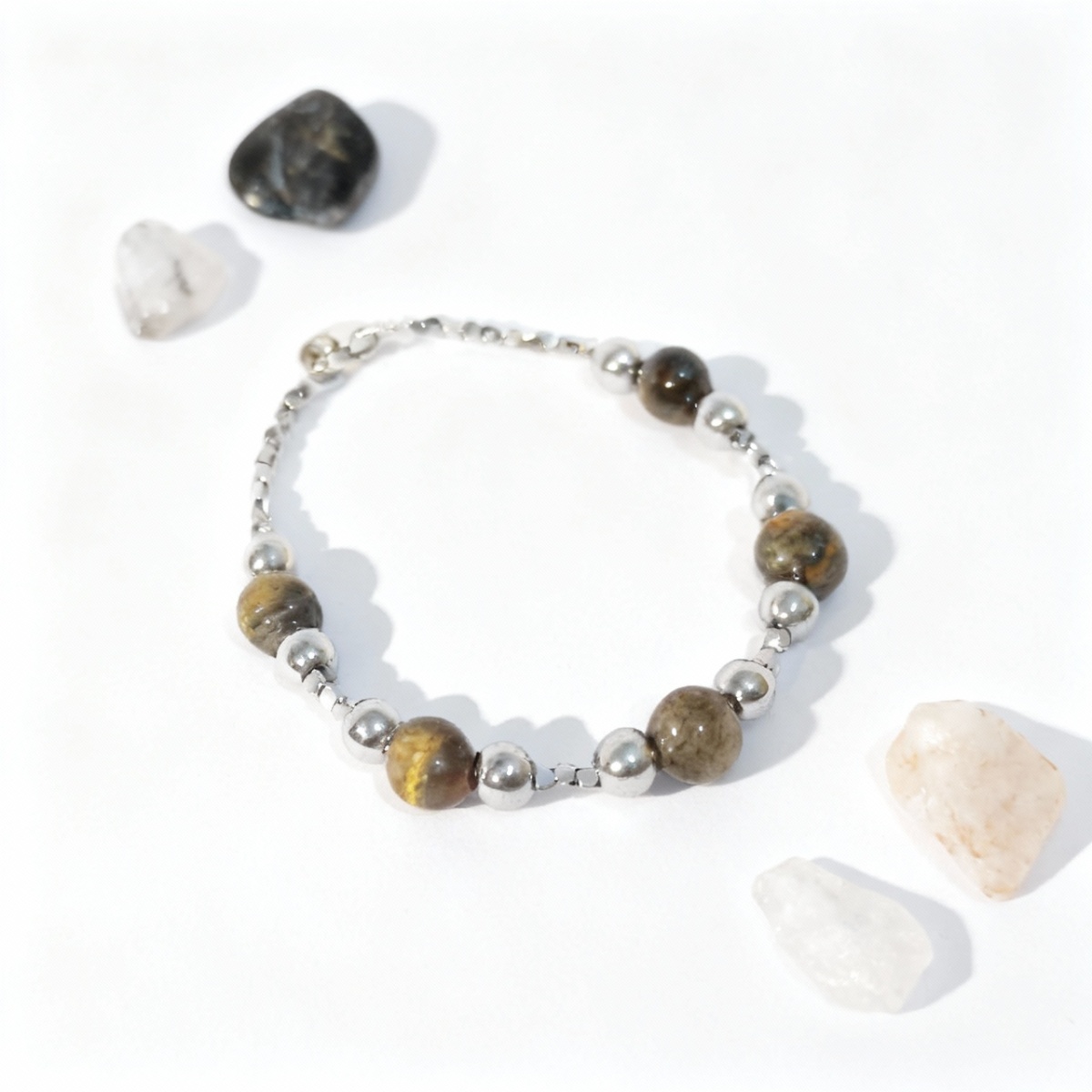 Kaplangözü ve Hematit Doğal Taş El Yapımı Bileklik – Güç, Koruma ve Denge